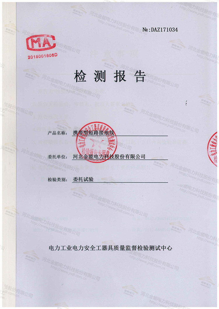110kv 35平方攜帶型短路接地線檢測報告